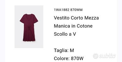 vestito con laccio in vita Tezenis porpora 100% cotone Taglia M scollo a V