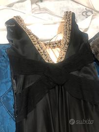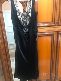 Vestito elegante da cerimonia, lungo, colore nero impreziosito da perline petto e spalle, indossato una sola volta