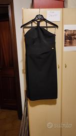 Vestito nero con ampio scollo dietro e chiusura dietro al collo e spacco dietro con cerniera