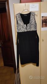 Vestito nero con corpetto reggiseno incorporato a motivo bianco e nero
