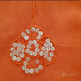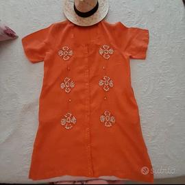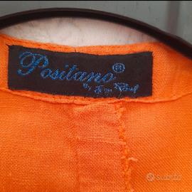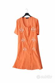 Vestito camicione curvy taglia 54 in puro lino, firmato Positano by Jean Paul. • Realizzato in 100% lino naturale: fresco, traspirante e ideale per le giornate più calde. • Tonalità arancio vivace che illumina la figura e dona energia a ogni look. • Ricami floreali impreziositi da paillettes e perline per un tocco raffinato e luminoso. • Modello ampio, comodo e versatile, perfetto per uno stile boho-chic o casual elegante. • Condizioni eccellenti: indossato pochissimo e conservato con grande cura. • Autentica qualità artigianale Made in Italy, con tutto il fascino dello stile mediterraneo.