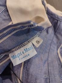 vestito da bambina . cotone, fatto a mano dalla sartoria per bambini di Firenze Maghi e Maci. taglia: anni 5. colore azzurro.