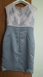 Vendo vestito da cerimonia rosa/argento lucido, con coprispalle rosa tipo giacchino . indossato 2 volte taglia 48. Con ricami nella