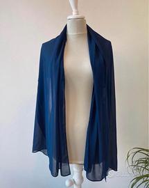 Abito da cerimonia blu scuro ricoperto di lustrini, con cerniera nel dietro e stola.