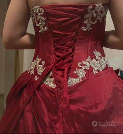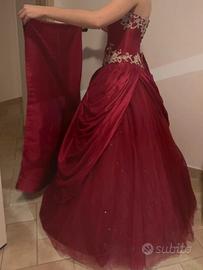 Vestito da cerimonia color borgogna completo di stola e sottogonna. Veste da XS a M, corpetto regolabile.