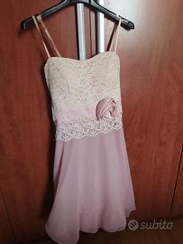 Vestito da cerimonia, marca Rinascimento. Corpetto ricoperto in pizzo color avorio e gonna in tulle rosa antico. Usato solo due volte. In aggiunta coprispalle tulle avorio marca Rinascimento.