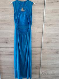 Vestito da cerimonia lungo blu. Con schiena scoperta bordata in pizzo blu. Lunghezza da spalla a terra cm 145