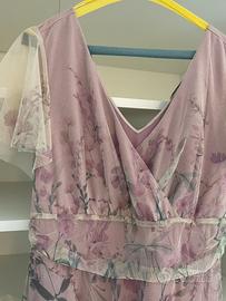 Vestito da cerimonia tg. 44 lunghezza cm. 150 vita cm. 40 nuovo con cartellino colore base rosa con fiori. Ritito a vs carico