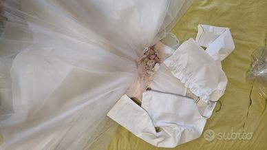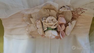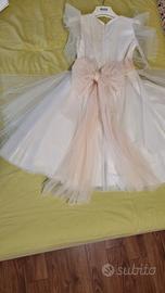 vestito da cerimonia in tulle color panna e rosa pallido con cinta fiorata.coprispalla in tinta età 9 anni/134cm