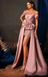 Abito da cerimonia rosa con maxi fiocco , modello asimmetrico con gonna corta impreziosita da paillettes e perline argento, corpetto con stecche con scollo a barca e coda lunga in raso spesso il vestito è di ottima fattura veste una Xs allego foto per le misure mai indossato adatto a cerimonie o diciottesimo. Pink formal dress with maxi bow, asymmetrical model with short skirt embellished with sequins and silver beads, bodice with bones with boat neckline and long train in thick satin, the dress is of excellent workmanship, fits an Xs, I attach a photo for the measurements, never worn, suitable for ceremonies or an eighteenth birthday. Robe de soirée rose avec maxi nœud, modèle asymétrique avec jupe courte agrémentée de paillettes et de perles argentées, corsage à baleines avec décolleté bateau et longue traîne en satin épais, la robe est d'excellente facture, convient à un Xs, je joins une photo pour les mesures, jamais portée, convient aux cérémonies ou à un dix-huitième anniversaire. Vestido formal rosa con maxi lazo, modelo asimétrico con falda corta adornada con lentejuelas y cuentas plateadas, cuerpo con huesos con escote barco y larga cola en satén grueso, el vestido es de excelente confección, talla Xs, adjunto foto para las medidas, nunca usado, adecuado para ceremonias o un decimoctavo cumpleaños. Rosa Abendkleid mit Maxi-Schleife, asymmetrisches Modell mit kurzem Rock, verziert mit Pailletten und silbernen Perlen, Mieder mit Knochen mit U-Boot-Ausschnitt und langer Schleppe aus dickem Satin, das Kleid ist hervorragend verarbeitet, passt einer XS, ich füge ein Foto für die Maße bei, nie getragen, geeignet für Zeremonien oder einen achtzehnten Geburtstag