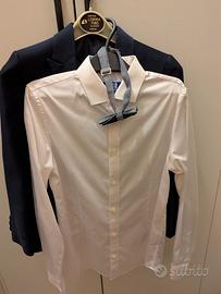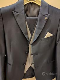 Completo di giacca, pantalone, gilet, camicia e papillon.