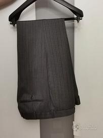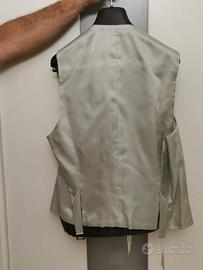 vendo vestito cerimonia taglia 50/52 portato a casa dall' atelier e MAI USATO..fresco lana taglio mezzo tight( senza code)..pantalone rigato sul tono del grigio..panciotto grigio perla e giacca nera con revers in seta ..NUOVO!