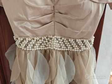 Vendo vestito da cerimonia Rinascimento,con il suo coprispalle gonna con balze, imbottitura seno, dettaglio in vita con strass e perle. Ottime condizioni Taglia S.