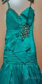 Vestito da cerimonia verde smeraldo/ tourquise lungo dell'atelier IMPERO Couture (le foto ingannano, il colore più realistico è quello nel pallino cerchiato in 4 foto).
