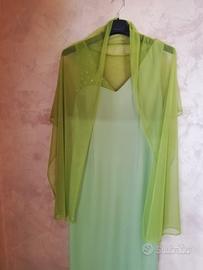 Vestito da cerimonia donna vintage con spalle in tulle e brillantini comprensivo di stola.