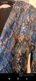 vestito interamente pitonato nei toni azzurro tenue . profonda scollatura sul davanti
