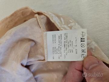 Vestito estivo senza maniche, con spalle e parte superiore del busto trasparente, leggero ed elegante, taglia 46, in viscosa e poliammide. Indossato solo una volta in occasione di un matrimonio.