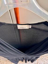 Vestito nero taglia S PINKO in viscosa con scollatura a V profonda e lunghezza ginocchio, come nuovo.