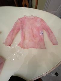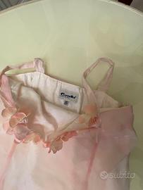 Vestito da ragazzina , taglia 10 anni , composto da abitino a sottoveste con spalline decorate con fiori e perline in tulle foderato e completato da corpetto coprispalle . Acquistato da Gusella Milano .
