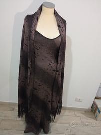 Composto da vestito e ampio scialle con frange.