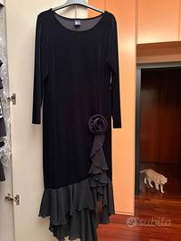 Vestito da sera donna lungo in velluto nero con balza in seta taglia 44 sisxt sense
