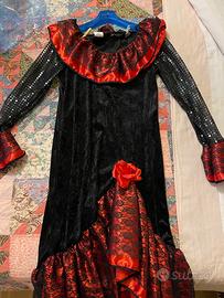 Vestito da ballerina spagnola, usato una volta, in perfette condizioni e munito di accessori come guanti e velo.