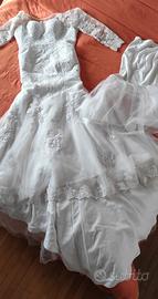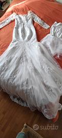 Per un amica vendo abito da sposa taglio a sirena, con pizzo ricamato, effetto tatoo nelle braccia e scollo a barchetta.