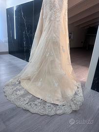 Vestito da sposa taglia S, colore panna. In condizioni perfette, privo di qualsiasi segno di usura. Elegante e raffinato, pronto per essere indossato nel tuo giorno speciale.