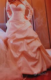 vestito da sposa in seta di Modigliani con velo e sottogonna e coprispalle