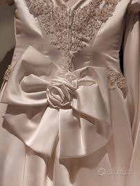 Vendo abito da sposa semplice, taglia 42 , colore bianco. Corpetto con ricami paillettes e perline, gonna larga con strascico e relativo sottoveste in tulle. Manica molto corta, scollo a V sia sul davanti che sul retro, chiusura con zip e da un grosso fiocco (asportabile) alla base della zip. Guanti a meta braccio con ricamo in coordinato al vestito Lavato e tenuto nelle sua sacca per il trasporto. . Prezzo € 290 Trattabile