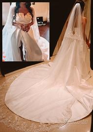 Vestito da Sposa con strascico lunghissimo in mikado di seta.