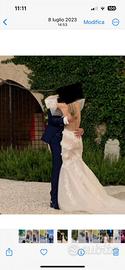 Vestito da sposa e da sposo Utilizzati una sola volta lo scorso anno, successivamente lavati e messi nell’armadio nelle rispettive custodie vendo singolarmente o insieme abiti con le seguenti caratteristiche: -abito da sposo composto da pantalone + camicia + gilet + giacca + cravatta + gemelli, indossato da me che sono alto 1,83 mt peso circa 92 kg VENDO A EURO 500 non trattabile (pagato 1200) -abito da donna indossato da mia moglie alta circa 1,72 mt peso circa 60 kg, schiena scoperta stile a sirena, realizzato appositamente per lei (non è una produzione di serie perció è un abito che hanno visto solo chi ha partecipato alla nostra cerimonia)pagato 4500€ ( dimostrabile con fattura) in vendita a euro 2500€. Entrambi modificabili da vs sarto. Per informazioni 3384841174 Andrea