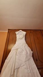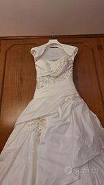 Vestito da sposa tg 42 tessuto raso, con toulle e pietrine. Coprispalle in raso maniche corte
