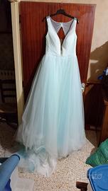 vestito da sposa celeste polvere e bianco mai usato acquisto presso il negozio "come una favola"
