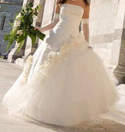 Vendo bellissimo vestito da sposa, misura M per altezze da circa 1,60 m a 1,70m, lavato molto bene in lavanderia professionale.
