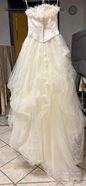 Vestito da sposa modello RADIOSA Completo di stola ,guanti, velo e cuscino per fedi. Taglia 42
