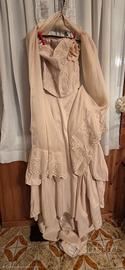vestito da sposa composto da corpetto ricamato in seta , gonna svasata nel davanti e strascino dietro in seta non ricamata solo piccola applicazione ricamata davanti della gonna , stola in seta ricamata tutto color burro , evventualmente regalo biancheria body e calze abinate