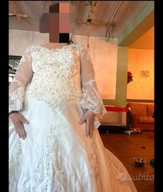 abito da sposa usato mezza giornata. raso perline e strascico principesco. lavato ma sicuramente da rinfrescare.. acquistato presso boutique DIEMME sposi. Immaginalo fresco di pulitura e stirato..... è un sogno..