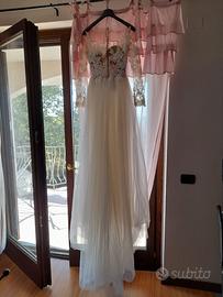 Bottoncini nude e bianchi sulla schiena e dettagli floreali sul corpetto.