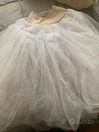 Abito da sposa con alcuni segni di usura e necessita di pulizia, composto da sottoveste, velo, guanti e un vestito con perline sul corpetto, di St. Patrick, taglia S