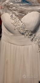 Vestito da sposa stile impero con taglio sotto il seno la misura sotto il seno è cm 75 quella del seno 90 per il resto chiaramente non ci sono problemi essendo ampio e lungo