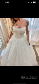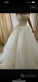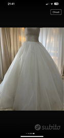 Abito Sposa . Sartoriale . Unico . Cristalli e Pietre sul bustino cucite e applicate manualmente . Tessuti di pregiata qualità . . Retro con Strascico . Versatilità nella taglia con incrocio nella chiusura posteriore . Taglia S. Prezzo simbolico per donare luce a una sposa 🤍