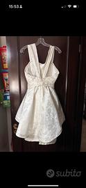 Vendo vestito da sposa corto. Taglia 42 Color bianco seta Tessuto in raso damoscato Nuovo Spedizione a carico dell’acquirente