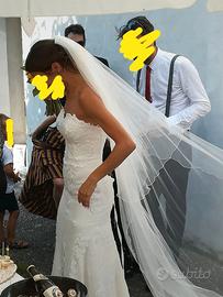 Vestito da sposa bianco a sirena con ricami in pizzo,ottima vestibilità risalta molto le forme.
