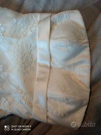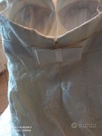 Insieme al vestito vendo anche guanti lunghi ( lunghezza dita: pollice 10 cm, indice 6cm, medio 7 cm, anulare 6,5 cm e mignolo 4 cm)in raso, e velo corto in decorato con raso ( con pettinino per fissaggio ai capelli).