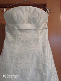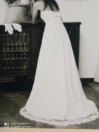 Vendo incantevole vestito da sposa, del 2012, prodotto da Alongi in raso, ricoperto da pizzo con decorazioni floreali, a impero.