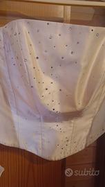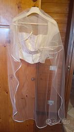 Vestito da sposa bianco, in seta, con velo e coprispalle in organza, corpetto con swarovski. Corpetto è diviso dalla gonna. Tenuto perfettamente.