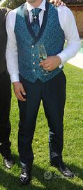 Vendo vestito da sposo..blu petrolio fatto su misura da un atelier…la foto parla da sola!pagato 3000€,ne chiedo la metà’