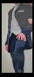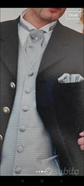 Completo di giacca, pantaloni, camicia, gilet e cravattino.
