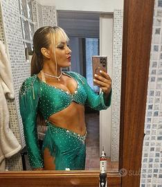 Vendo abito danza caraibica da competizione, da donna, indossato una volta sola! La taglia indicativa è una S-M e la mia altezza è 160 cm.